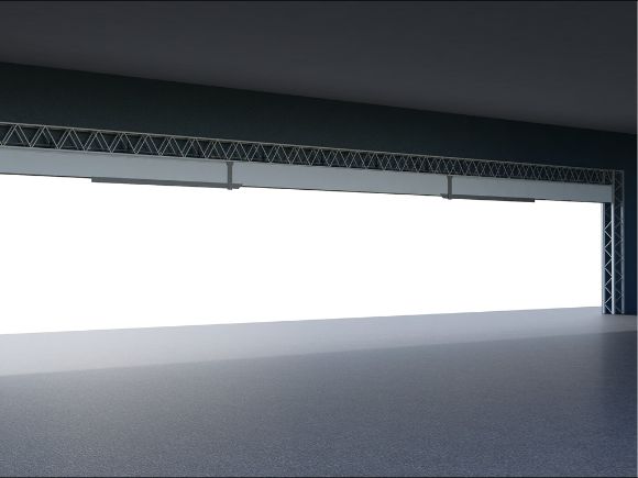 Ворота шторные подъемные с поворотной колонной предназначены для перекрытия проемов больших размеров. Ворота отличаются высокой степенью износостойкости и герметичности, устойчивы к большой ветровой нагрузке и не требуют дополнительного технического обслуживания. Благодаря промежуточной поворотной колонне возможно разделение проема для открывания ворот по секциям.